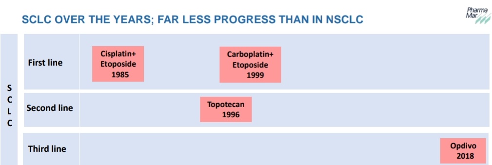 En Estados Unidos los investigadores administraron Zepsyre ( Lurbinectedina ) como Agente único a 61 Pacientes con CPCP Recurrente ( Small-Cell Lung Cáncer ) .