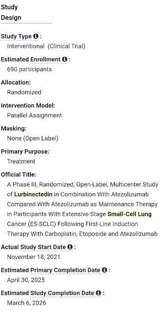 Fase III Que Realizan a Medias JazzPharma y Roche , Como Sponsors , en el Intento de Que Lurbinectedin Pudiera Usarse pyara el Mantenimiento de los Pacientes en el Entorno de la Primera Línea y Por Tanto No se Deriven a Segunda Línea ... Un Ensayo Que Termina en Marzo 2026 :