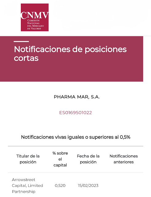 PharmaMar . Arrowstreet Capital, Limited Partnership Comunica a la CNMV una Posición Corta Por Encima del 0,50% .