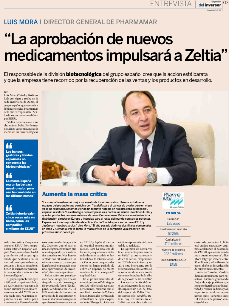 Entrevistas a Luis Mora de la Semana Pasada : "El Nuevo Fármaco de Zeltia será Mejor que el Yondelis".